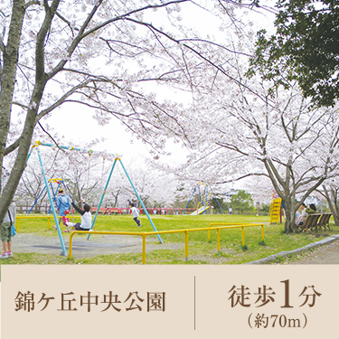錦ケ丘ヒルサイドモールや中央公園も目の前。休日の家族のお出かけスポットにも困りません。中央公園は桜の名所でもあるので、春にはお花見を楽しむことができます。